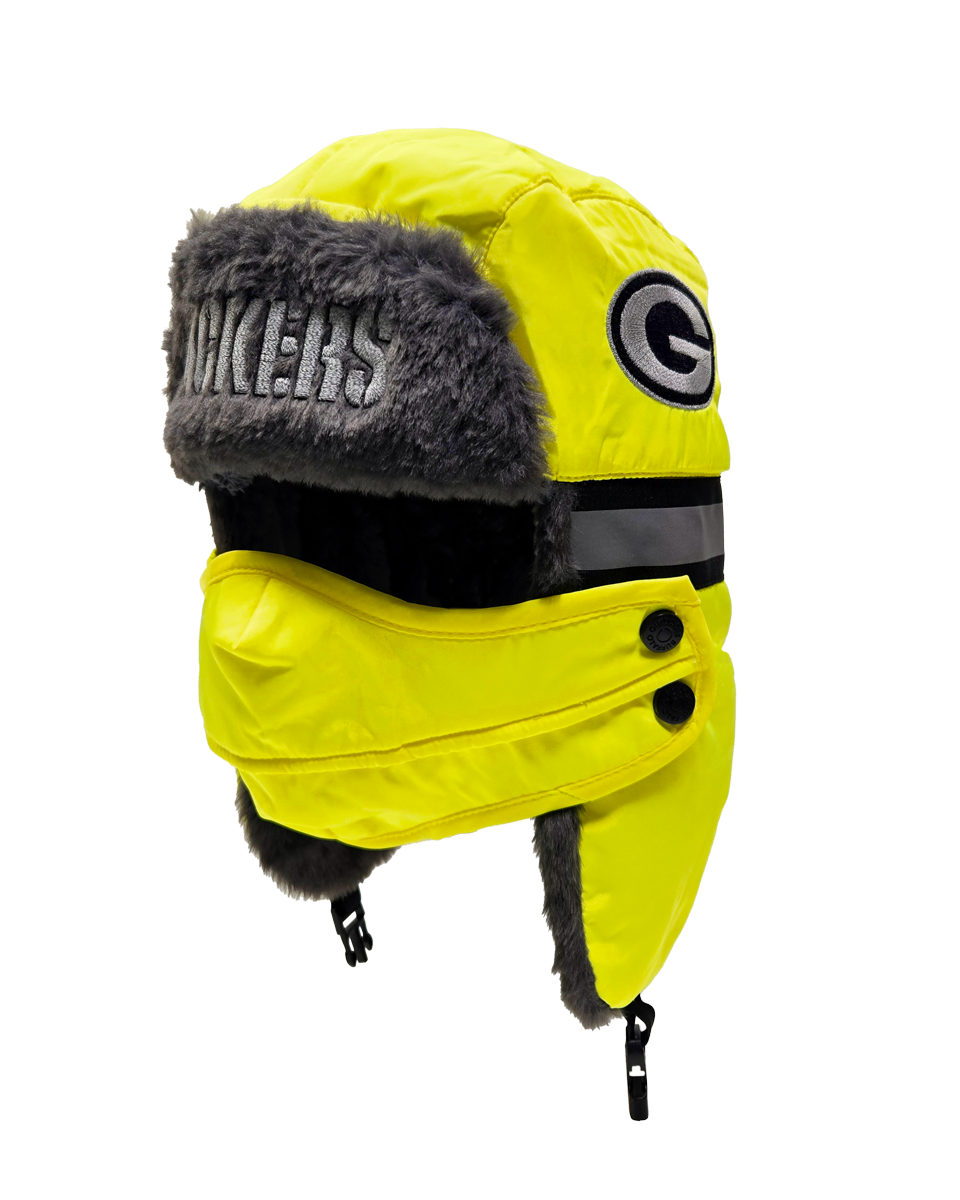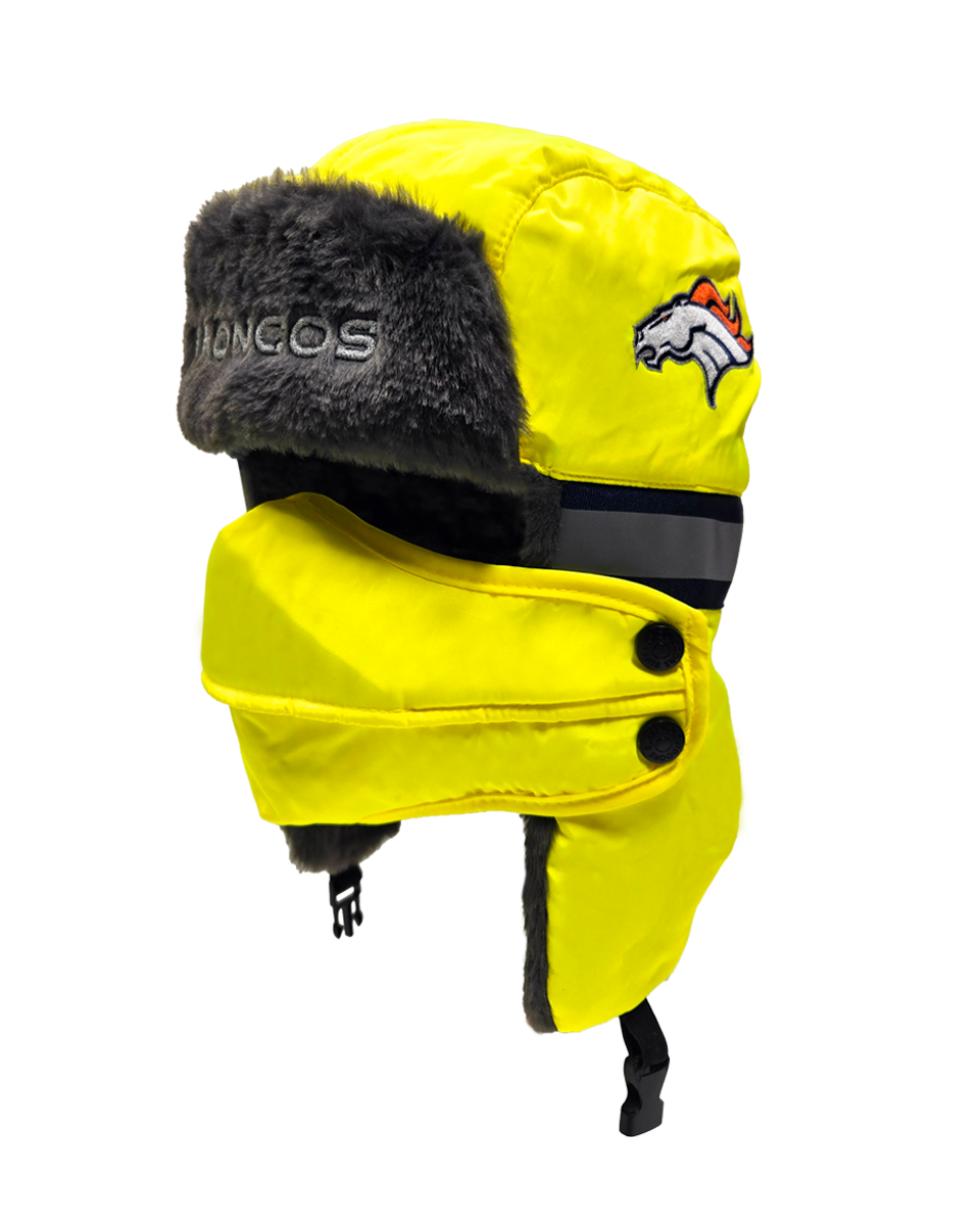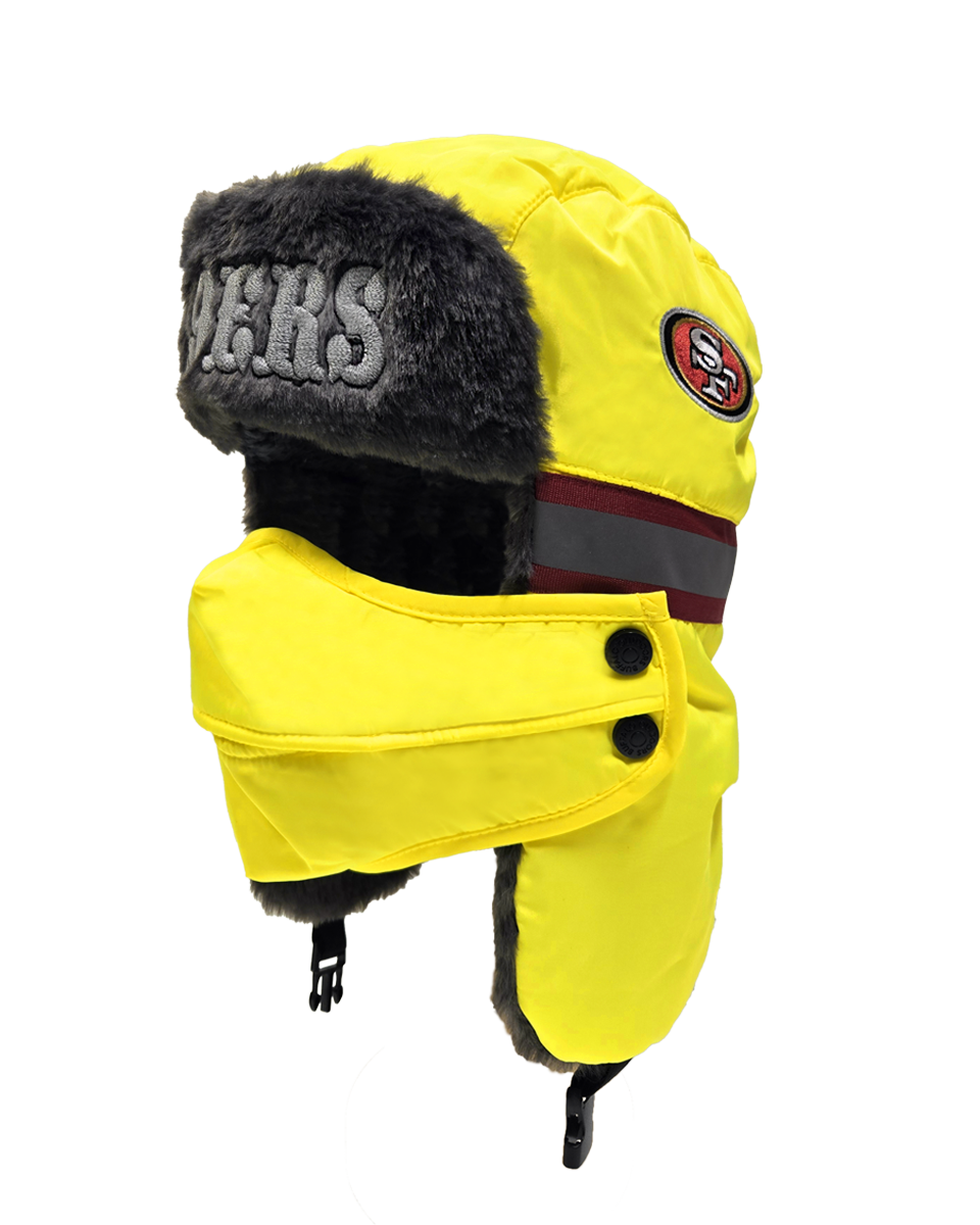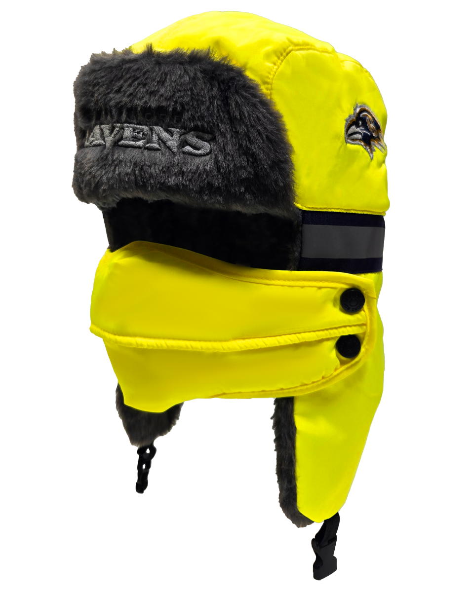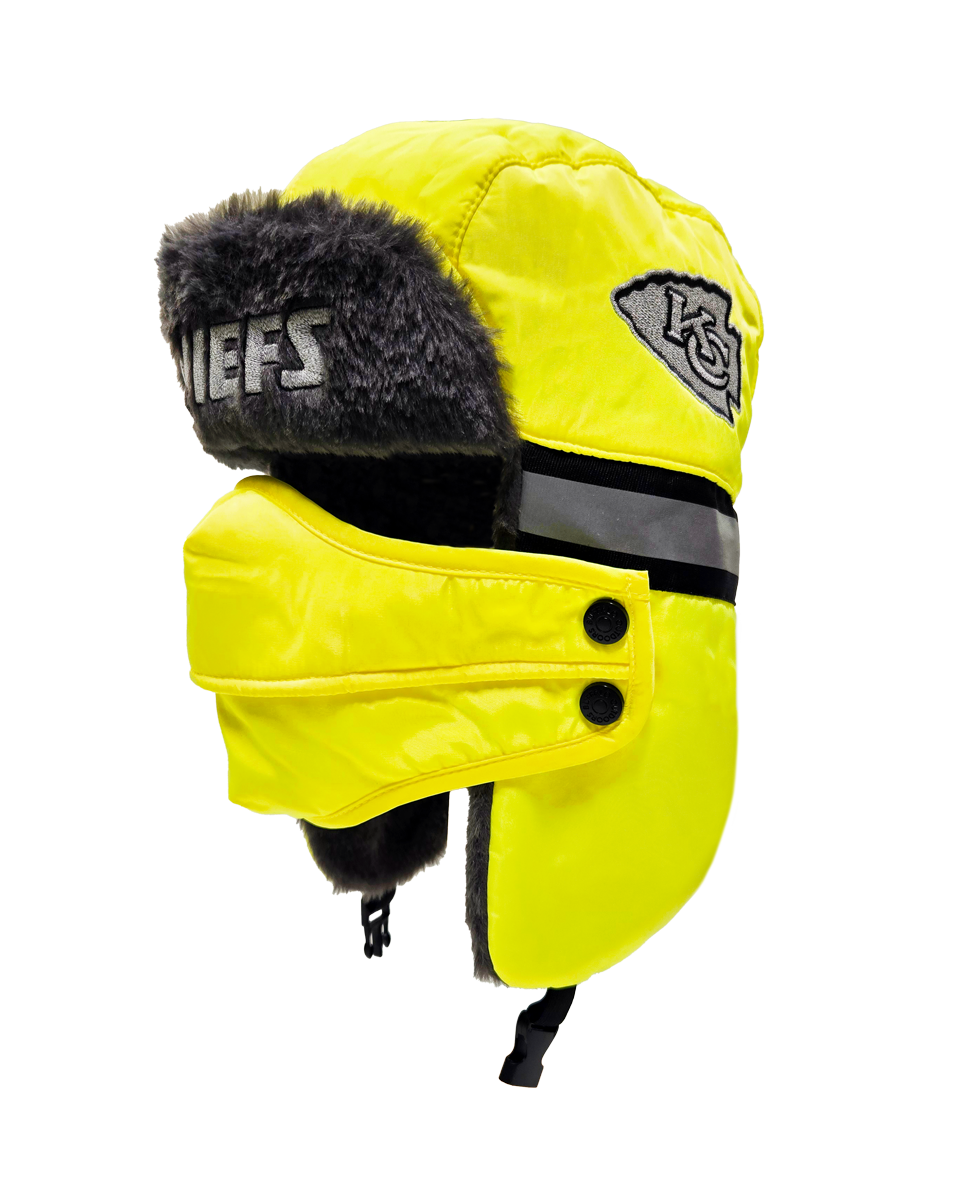 The ultimate winter hat for die-hard NFL fans who prioritize both safety and warmth. This aviator hat combines high-visibility features with a cozy faux fur lining and a removable face cover, making it perfect for the harshest winter conditions.