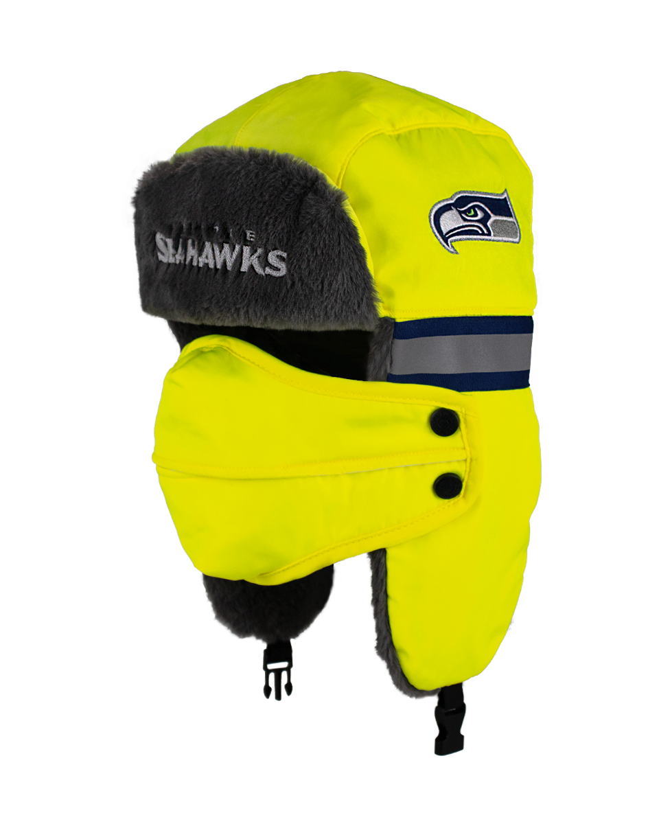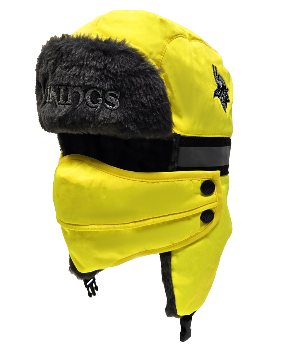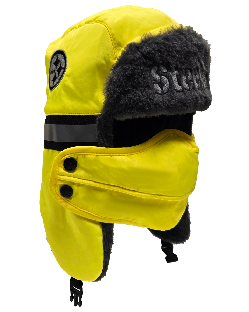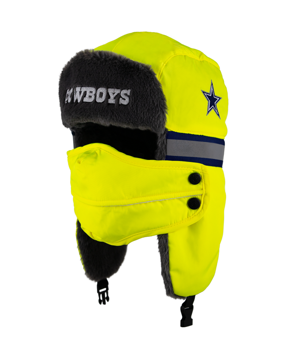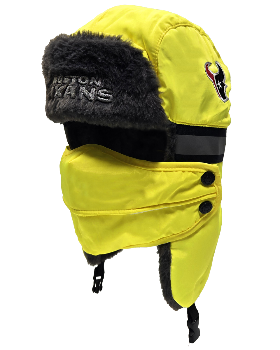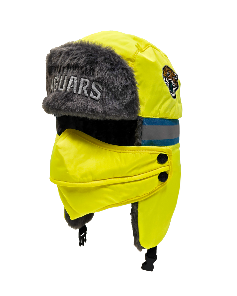 The ultimate winter hat for die-hard NFL fans who prioritize both safety and warmth. This aviator hat combines high-visibility features with a cozy faux fur lining and a removable face cover, making it perfect for the harshest winter conditions.