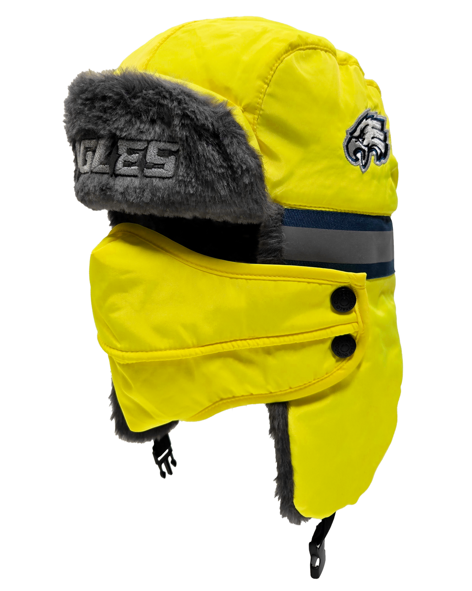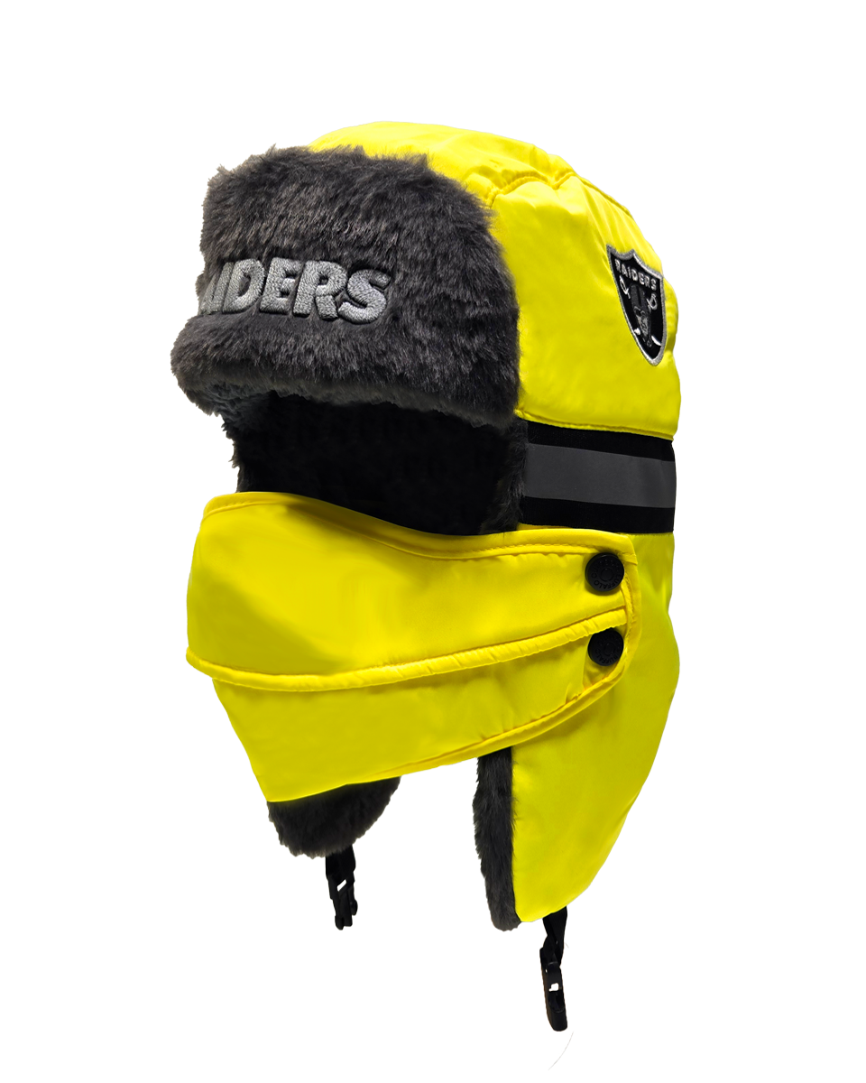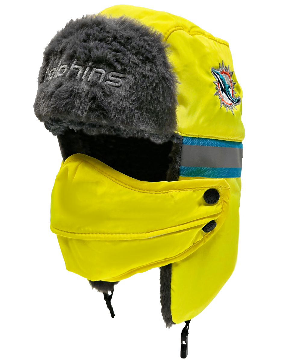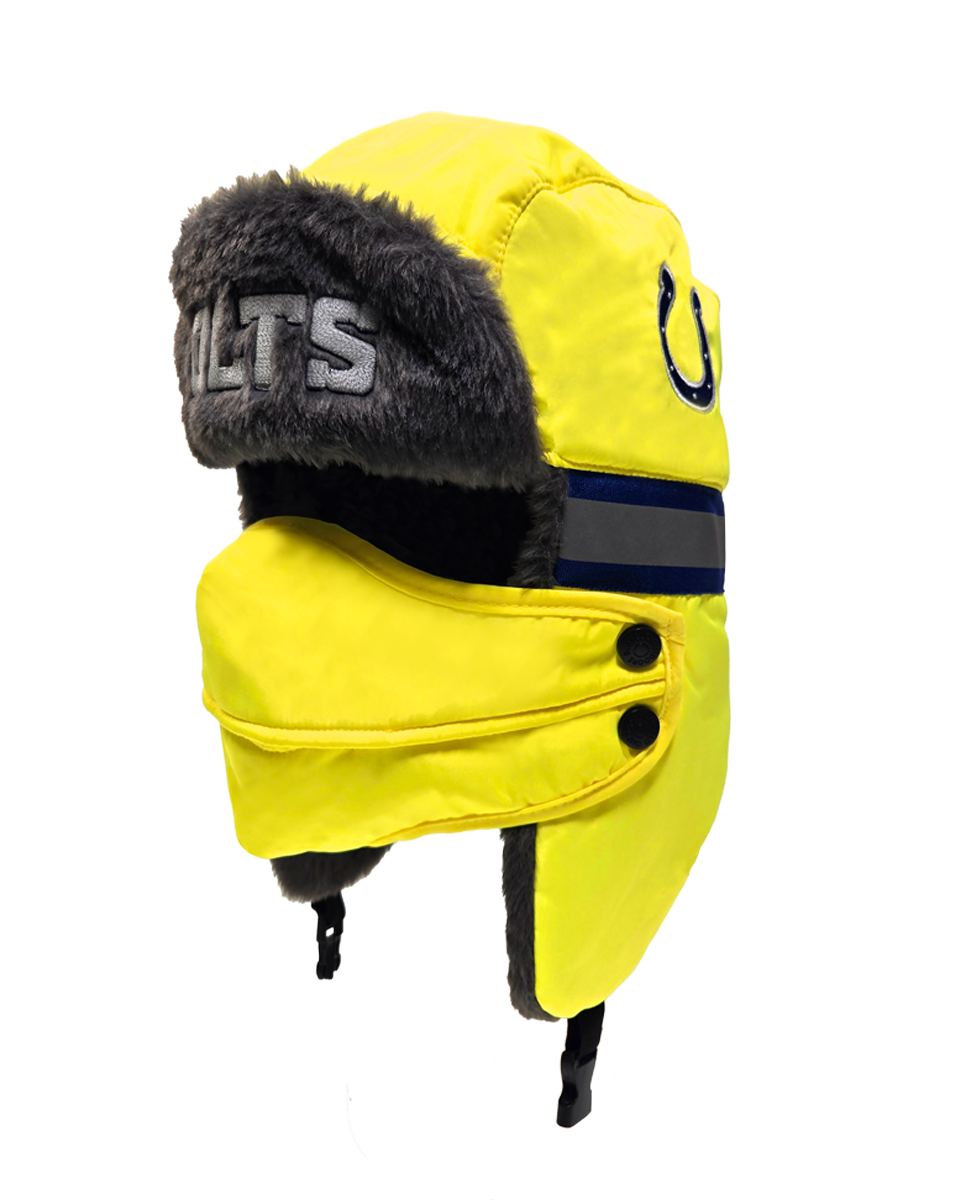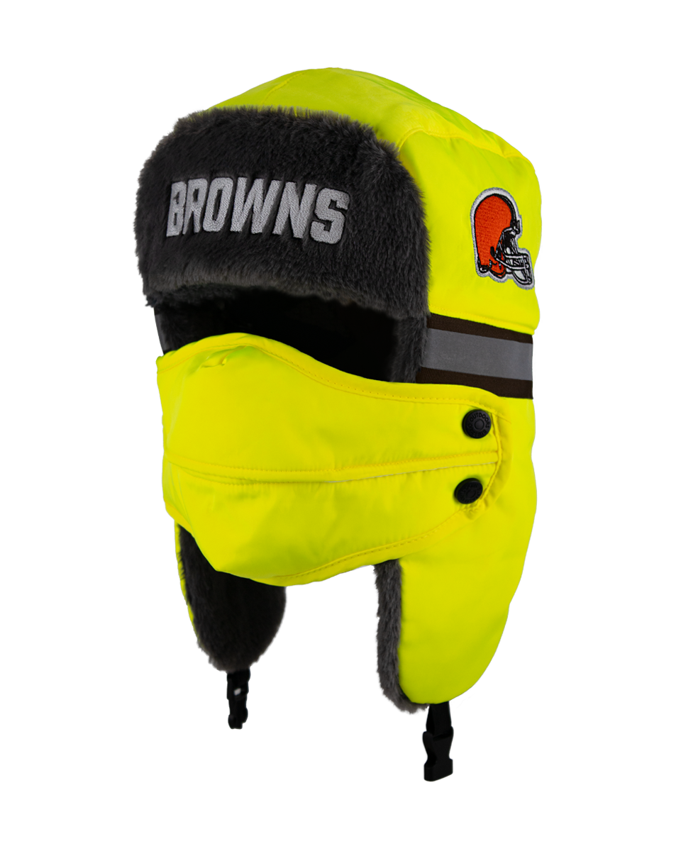 The ultimate winter hat for die-hard NFL fans who prioritize both safety and warmth. This aviator hat combines high-visibility features with a cozy faux fur lining and a removable face cover, making it perfect for the harshest winter conditions.